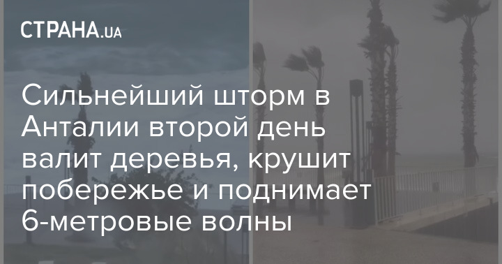 Сильнейший шторм в Анталии второй день валит деревья, крушит побережье и поднимает 6-метровые волны