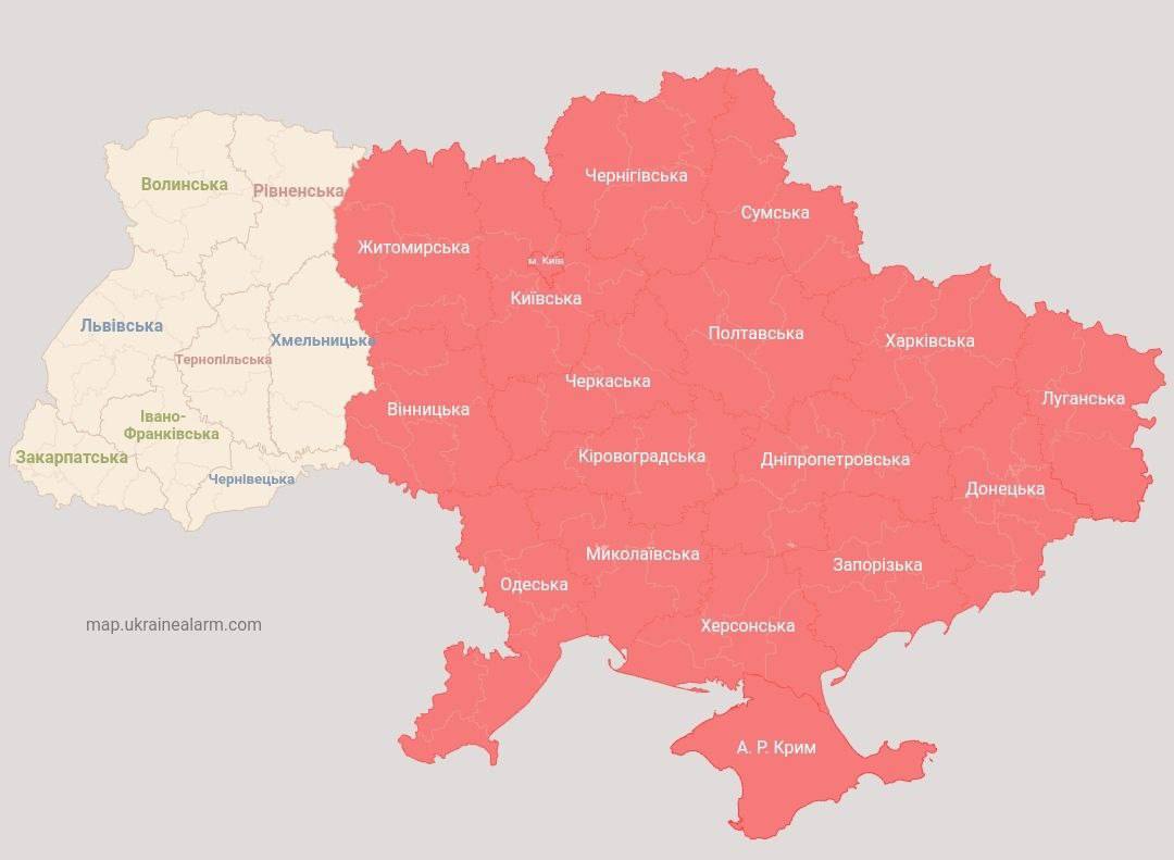 Тем временем воздушная тревога уже в большинстве областей Украины, в том числе в Киеве.