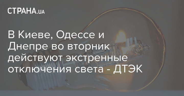 В Киеве, Одессе и Днепре во вторник, 17 января, продолжаются экстренные отключения света. Об этом сообщает ДТЭК.