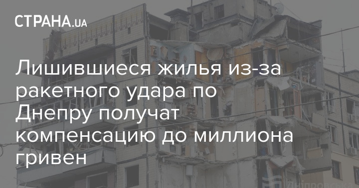 Лишившиеся жилья из-за ракетного удара по Днепру получат компенсацию до миллиона гривен