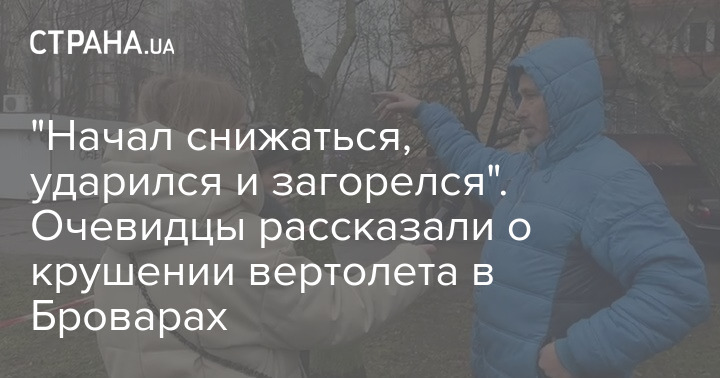 "Начал снижаться, ударился и загорелся". Очевидцы рассказали о крушении вертолета в Броварах