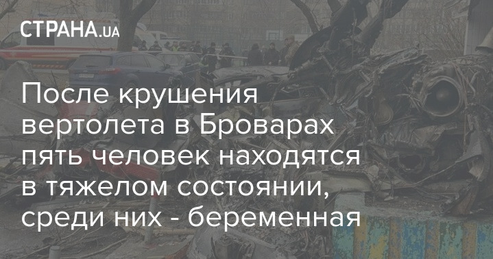 Пятеро пострадавших из-за падения вертолета в Броварах Киевской области в тяжелом состоянии, беременную женщину положили в гинекологию.