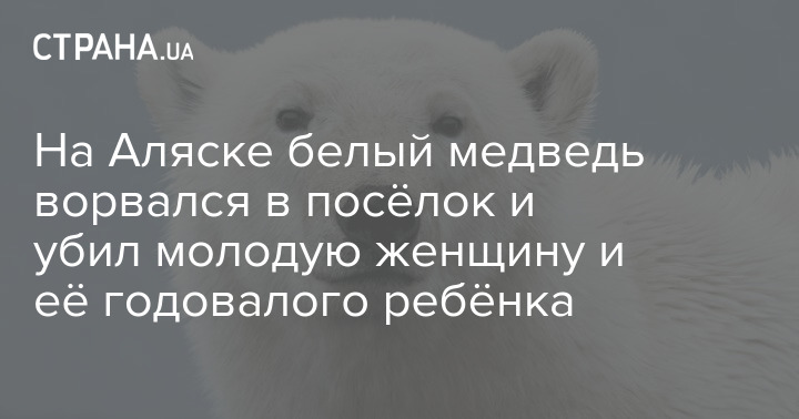 На Аляске белый медведь ворвался в посёлок и убил молодую женщину и её годовалого ребёнка
