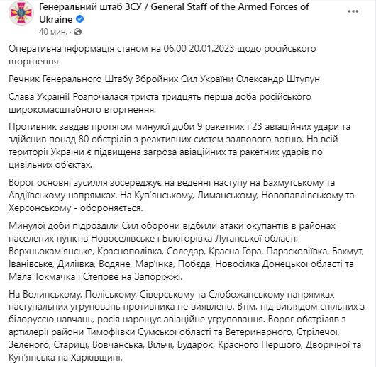 В пятницу, 20 января, в Украине идет уже 331-й день войны с РФ.