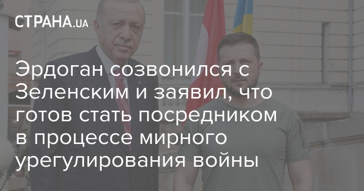 Эрдоган созвонился с Зеленским и заявил, что готов стать посредником в процессе мирного урегулирования войны