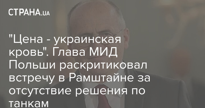 Глава Министерства иностранных дел Польши Збигнев Рау раскритиковал "Рамштайн" за отсутствие решения по танкам.