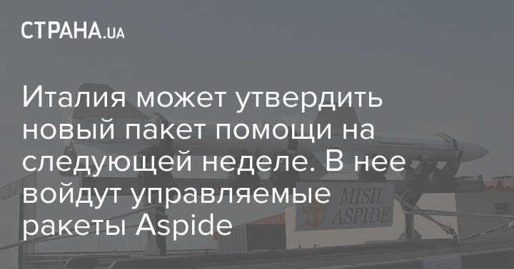 Правительство Италии примет шестой пакет военной помощи Украине на следующей неделе. В новый пакет оружия, который будет представлен в специальном парламентском комитете по безопасности и засекречен, войдут управляемые ракеты Aspide.