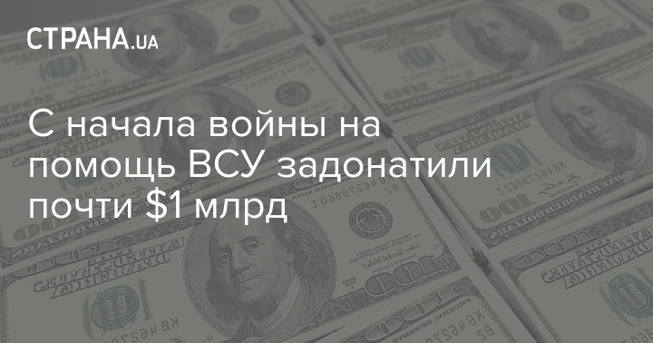 С начала полномасштабной войны в Украине на счета НБУ и в три крупнейших фонда страны задонатили более 33,96 миллиарда гривен (около 930,24 млн долларов - Ред.). Наибольший вклад (15,8 млрд) был собран на счета НБУ с 24 февраля по 5 мая.