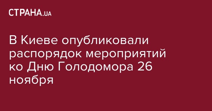 14:30 - Чествование возле Национального мемориала жертв Голодомора в Киеве при участии свидетелей Голодомора, президента Украины Петра Порошенко, руководителей украинских церквей, премьер-министра и председателя Верховной Рады, членов Платформы европейской памяти и совести, представителей дипломатических учреждений, общественности. (Ул. Лаврская, 3).