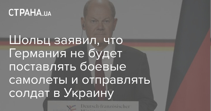 Германия не будет поставлять Украине боевые самолёты и отправлять своих солдат "ни сейчас, ни в будущем".