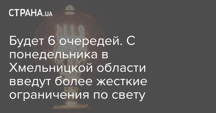 С понедельника, 30 января, в Хмельницкой области вводятся более жесткие ограничения по электроэнергии -  по схеме "6х3".