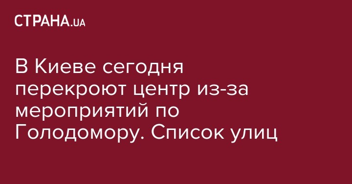 Сегодня, 26 ноября, в Киеве будет ограничено движение на центральных улицах города из-за чествования памяти жертв Голодомора. Об этом сообщает пресс-служба Киевской городской государственной администрации (КГГА).