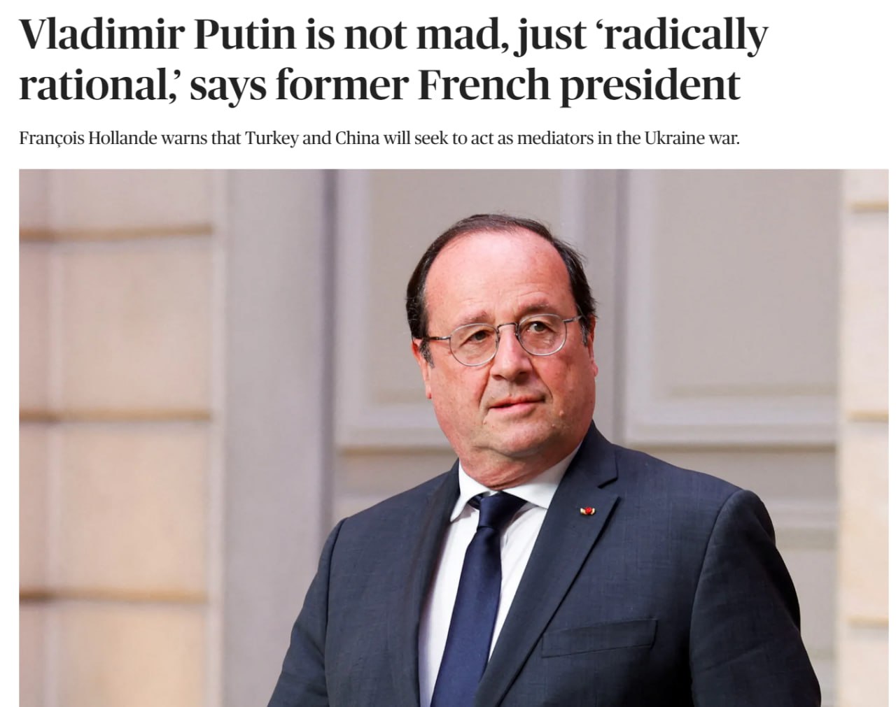 07.40 Бывший президент Франции Франсуа Олланд спрогнозировал, что Россия будет пытаться стабилизировать конфликт в Украине и привести дело к переговорам.