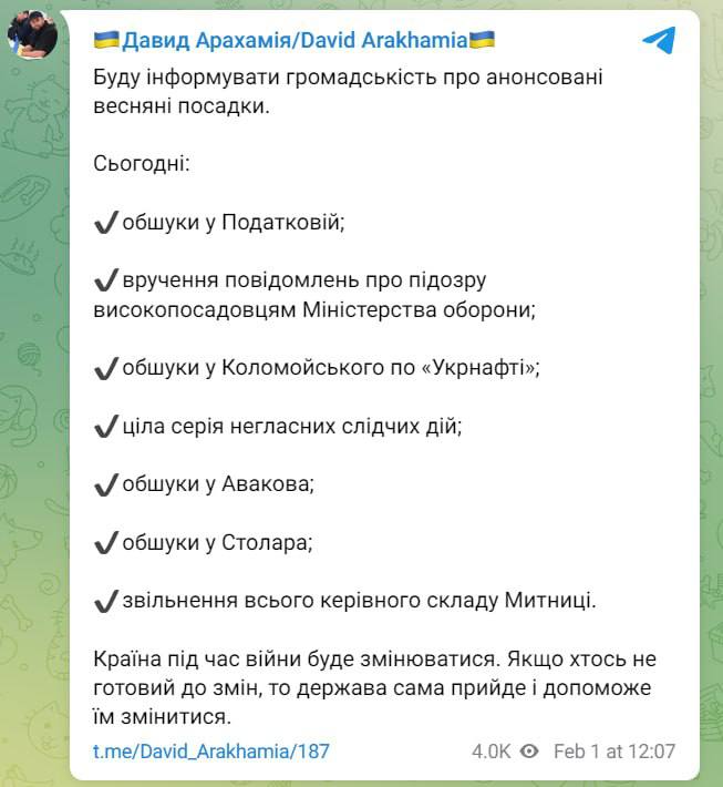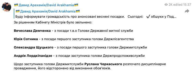 12.22 Сегодня будет уволено все руководство украинской таможни, пишет глава фракции «Слуга народа» Давид Арахамия.