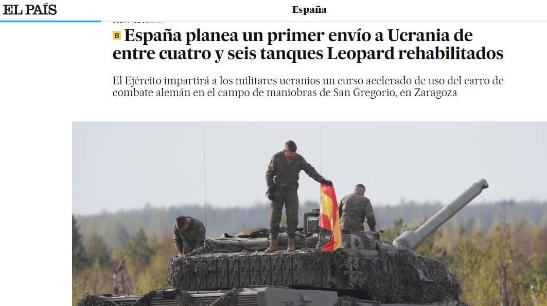 В сообщении говорится, что уже идет ремонт шести боевых танков Leopard 2A4, которые Испания готова отправить Украине. Эти танки более десяти лет находились на консервации и теперь нуждаются в восстановлении и модернизации.