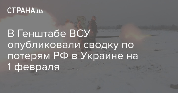 В среду, 1 февраля, Генштаб ВСУ обнародовал данные по общим боевым потерям РФ с начала полномасштабного вторжения.