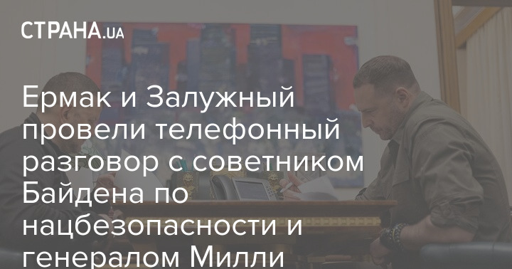 Ермак и Залужный провели телефонный разговор с советником Байдена по нацбезопасности и генералом Милли