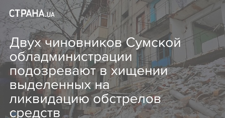 Двум чиновникам Сумской областной военной администрации и подрядчику объявлено подозрение в завладении 1,4 млн грн, выделенных на ликвидацию последствий обстрелов.