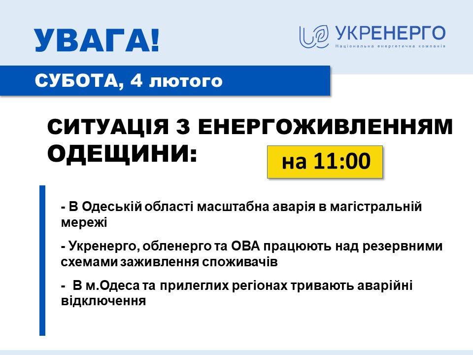 Утром на одной из высоковольтных подстанций вышел из строя автотрансформатор, восстановленный после российских атак 26 января. Из-за этого теперь в Одессе и нескольких прилегающих районах области действуют сетевые ограничения - доставить потребителям электроэнергию в полном объеме невозможно.