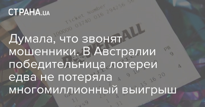 Победительница австралийской лотереи Powerball едва не лишилась приза в 27,7 миллиона долларов. Женщина попросту игнорировала звонки от организаторов, пытавшихся известить ее о выигрыше.