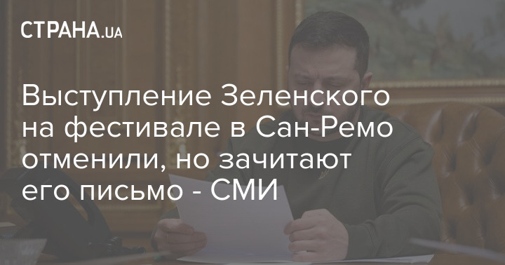 Выступление Зеленского на фестивале в Сан-Ремо отменили, но зачитают его письмо - СМИ