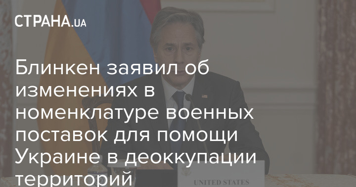 Блинкен заявил об изменениях в номенклатуре военных поставок для помощи Украине в деоккупации территорий