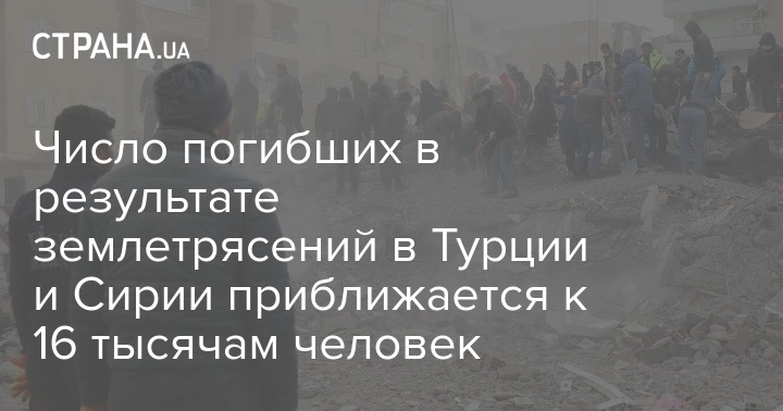 Число погибших в результате землетрясений в Турции и Сирии приближается к 16 тысячам человек
