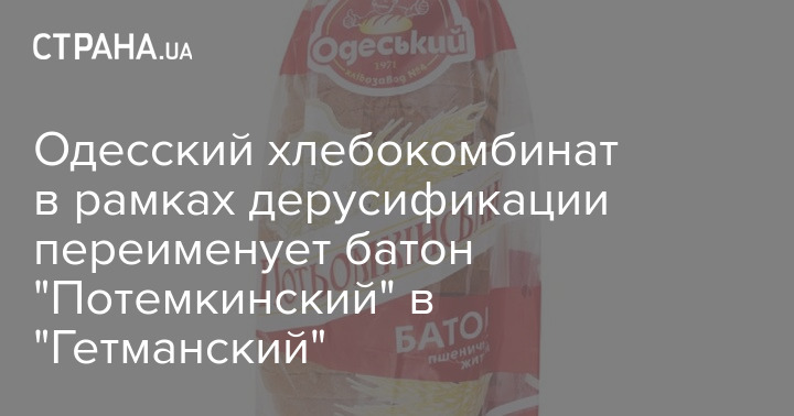 Одесский хлебокомбинат №4 ведет работы по переименованию своего батона "Потемкинский" в "Гетманский".