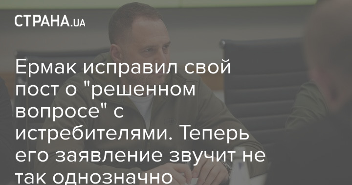 Ермак исправил свой пост о "решенном вопросе" с истребителями. Теперь его заявление звучит не так однозначно
