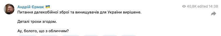 Глава Офиса президента Андрей Ермак переписал свое заявление о поставках Украине дальнобойного оружия и истребителей.