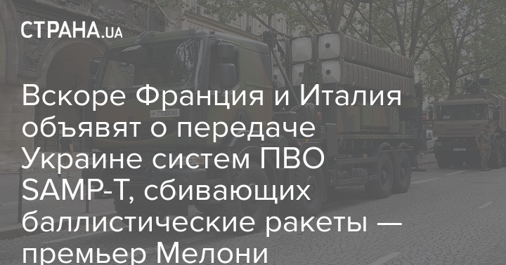 Премьер-министр Италии Джорджия Мелони подтвердила, что Рим и Париж отправят Киеву системы ПВО SAMP-T, о чем французские СМИ сообщали в конце января