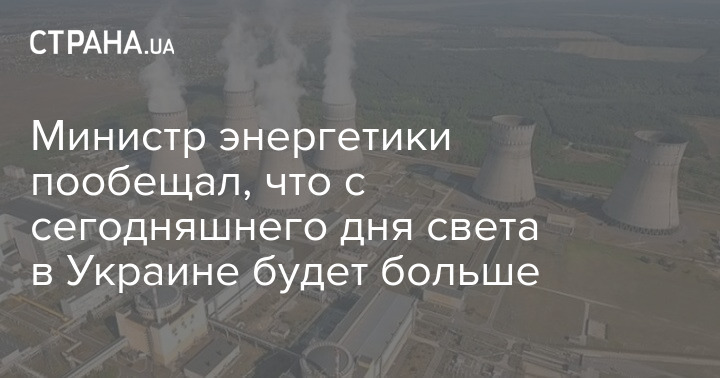 Министр энергетики пообещал, что с сегодняшнего дня света в Украине будет больше