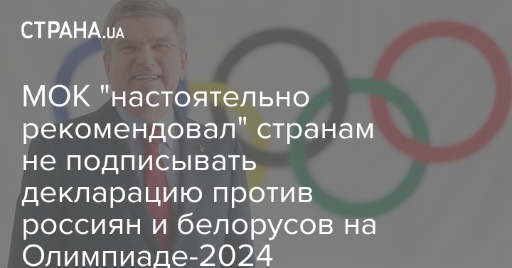 Международный олимпийский комитет "настоятельно рекомендовал" коалиции стран, выступающей против участия России и Беларуси в Олимпиаде в Париже, не подписывать совместную декларацию с требованием о недопуске спортсменов к Играм 2024 года.