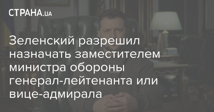 Зеленский разрешил назначать заместителем министра обороны генерал-лейтенанта или вице-адмирала