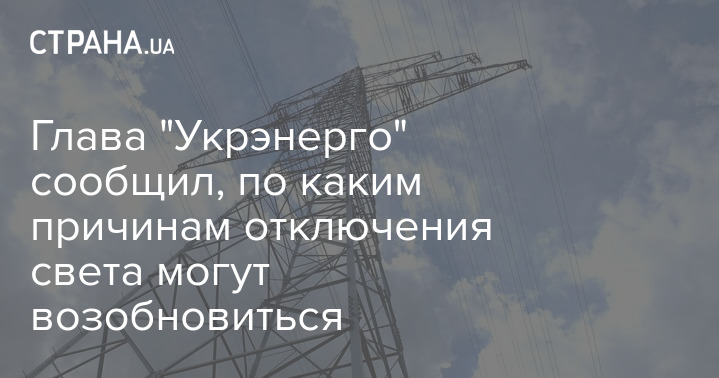 Глава "Укрэнерго" сообщил, по каким причинам отключения света могут возобновиться