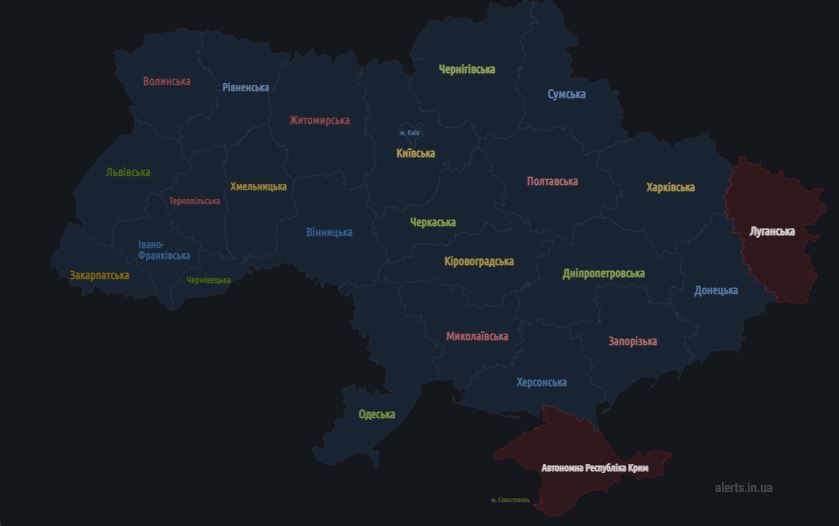 22:40 Воздушная тревога уже по всему юго-востоку страны. Позже добавилась Харьковская область.