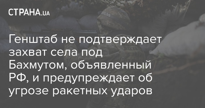 Генштаб не подтверждает захват села под Бахмутом, объявленный РФ, и предупреждает об угрозе ракетных ударов