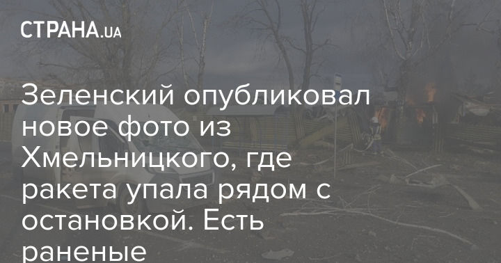 Зеленский опубликовал новое фото из Хмельницкого, где ракета упала рядом с остановкой. Есть раненые