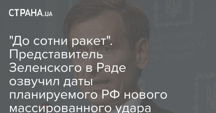"До сотни ракет". Представитель Зеленского в Раде озвучил даты планируемого РФ нового массированного удара