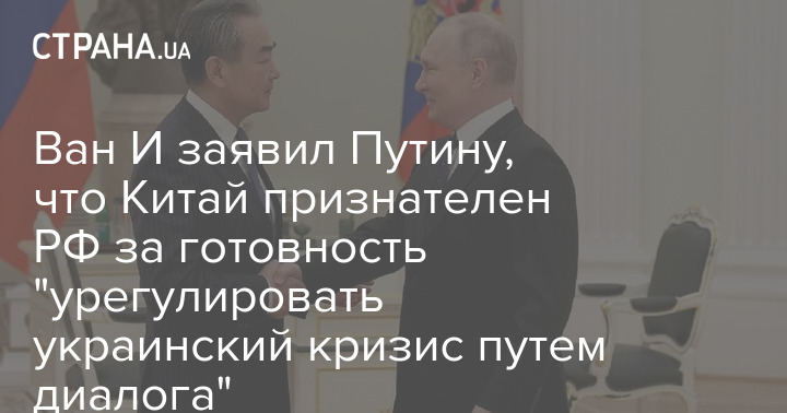 Ван И заявил Путину, что Китай признателен РФ за готовность "урегулировать украинский кризис путем диалога"