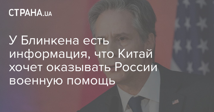 У Блинкена есть информация, что Китай хочет оказывать России военную помощь