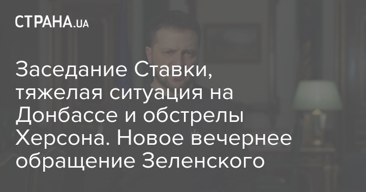 Заседание Ставки, тяжелая ситуация на Донбассе и обстрелы Херсона. Новое вечернее обращение Зеленского