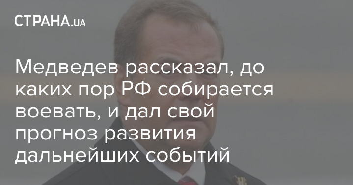 После захвата Россией территорий война, по мнению Медведева, окончится переговорами, которые будут "тяжелыми и нервными". А соглашение, на которое выйдут стороны, будет "без фундаментальных договорённостей о реальных границах или о новом Хельсинском пакте, обеспечивающем безопасность в Европе".