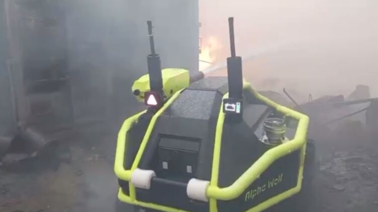В Киеве впервые применили робота для тушения пожара. Скриншот видео