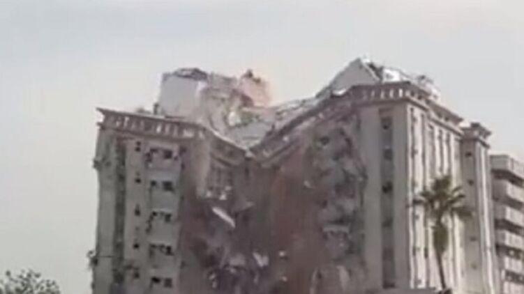 Во время землетрясения в Турции здания складывались, как бумажные. Скриншот видео
