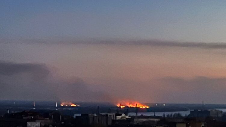 Фото пожаров на левом берегу Херсонской области сегодня вечером опубликовал первый замглавы Херсонского облсовета Юрий Соболевский.
