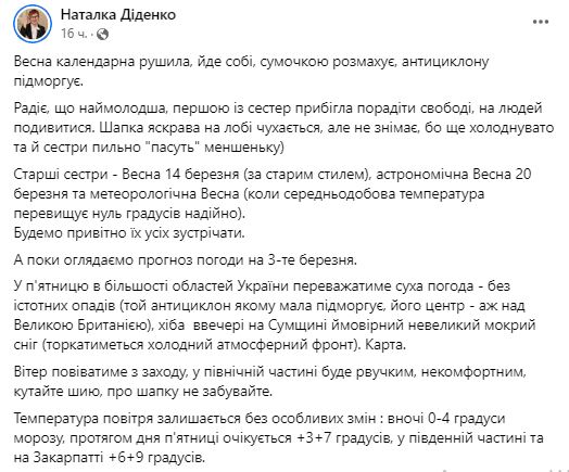Прогноз погоды на 3 марта 2023 года от Укргидрометцентра