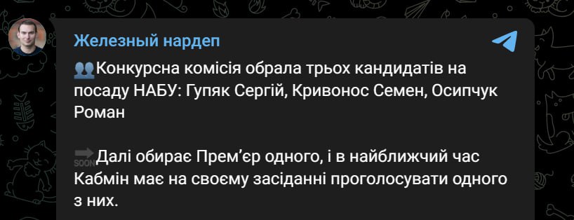 Далее одного из кандидатов должен выбрать Кабинет министров. Он и будет новым главой НАБУ.