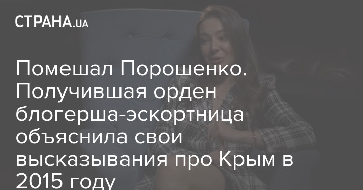 Помешал Порошенко. Получившая орден блогерша-эскортница объяснила свои высказывания про Крым в 2015 году