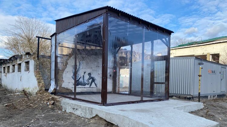 В Бородянке для защиты граффити британского художника Бэнкси соорудили небольшой павильон.